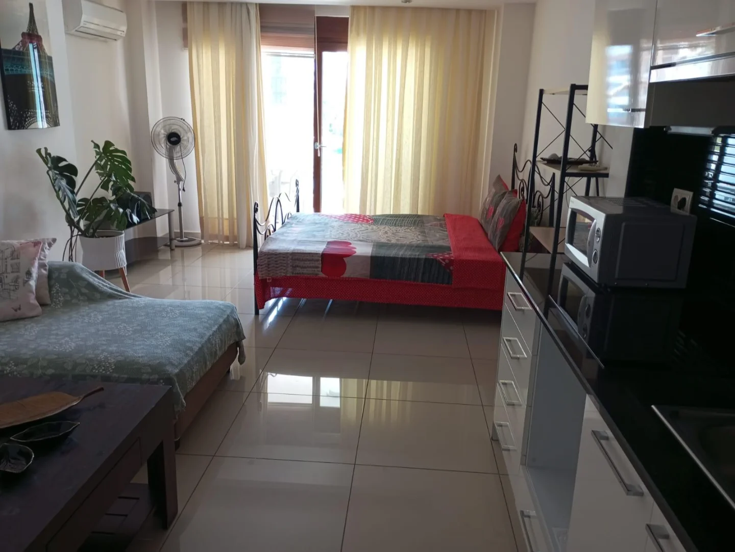 The apartment comes fully furnished with high-end designer furniture, a fully equipped American kitchen, and large floor-to-ceiling windows that fill the space with natural light. The complex features a swimming pool, fitness center, and 24/7 security. Just 200 meters from the sandy beaches.