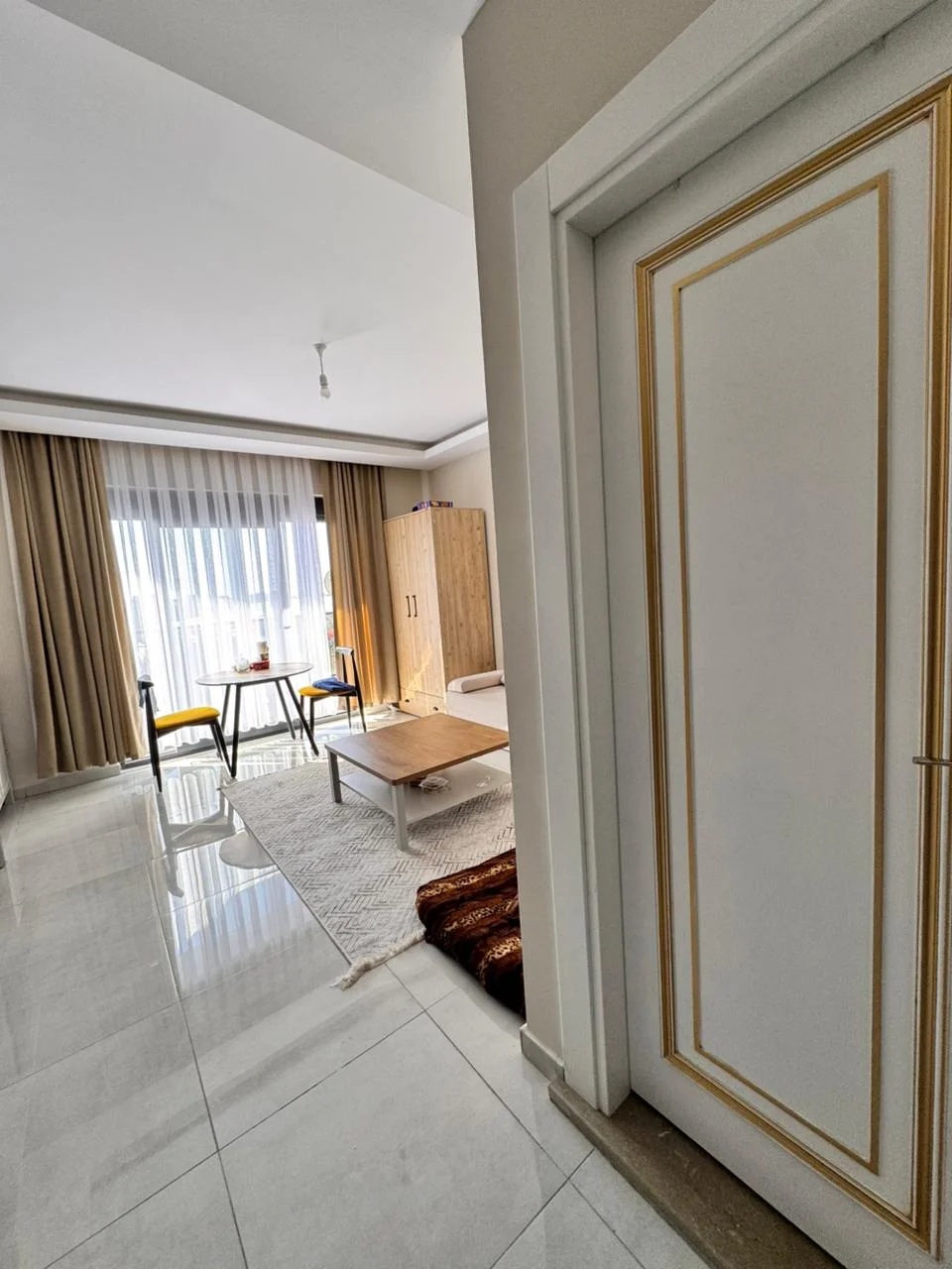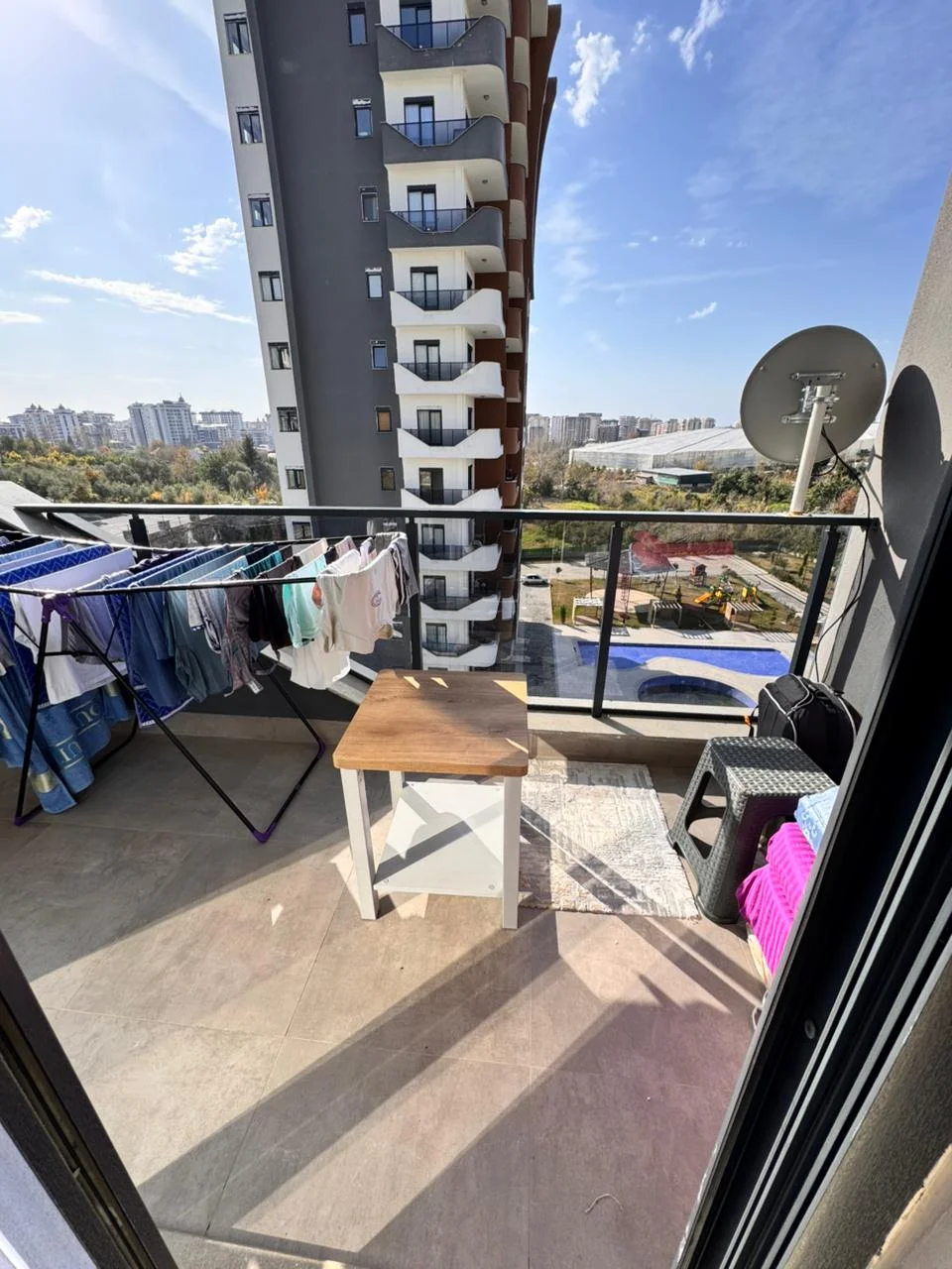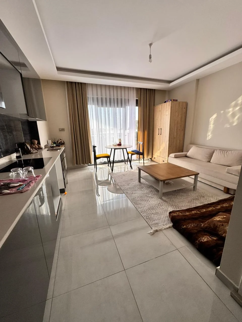 The apartment comes fully furnished with high-end designer furniture, a fully equipped American kitchen, and large floor-to-ceiling windows that fill the space with natural light. The complex features a swimming pool, fitness center, and 24/7 security. Just 200 meters from the sandy beaches.