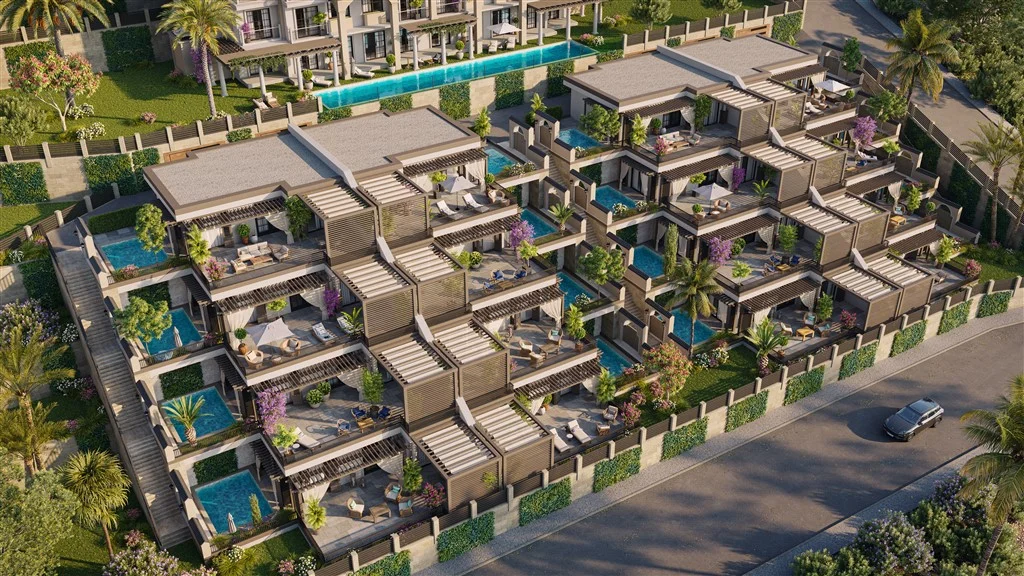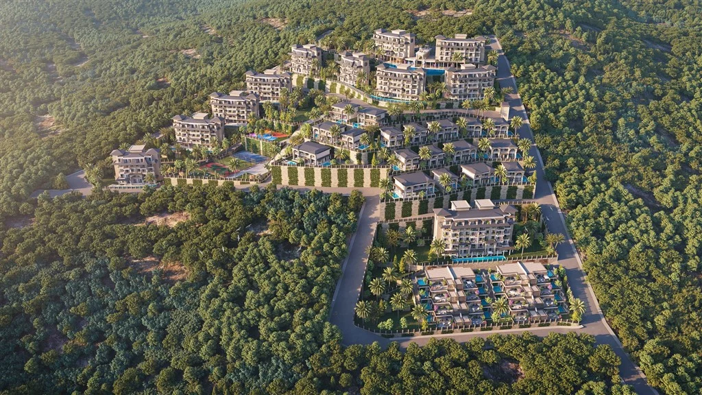 The project consists of different plots on which several types of real estate are located. Each client is able to choose the perfect house by the sea, based on their preferences. 1+1 apartments, 2+1 duplex penthouses, 2+1 duplexes on lower floors, detached triplex villas and twin villas.